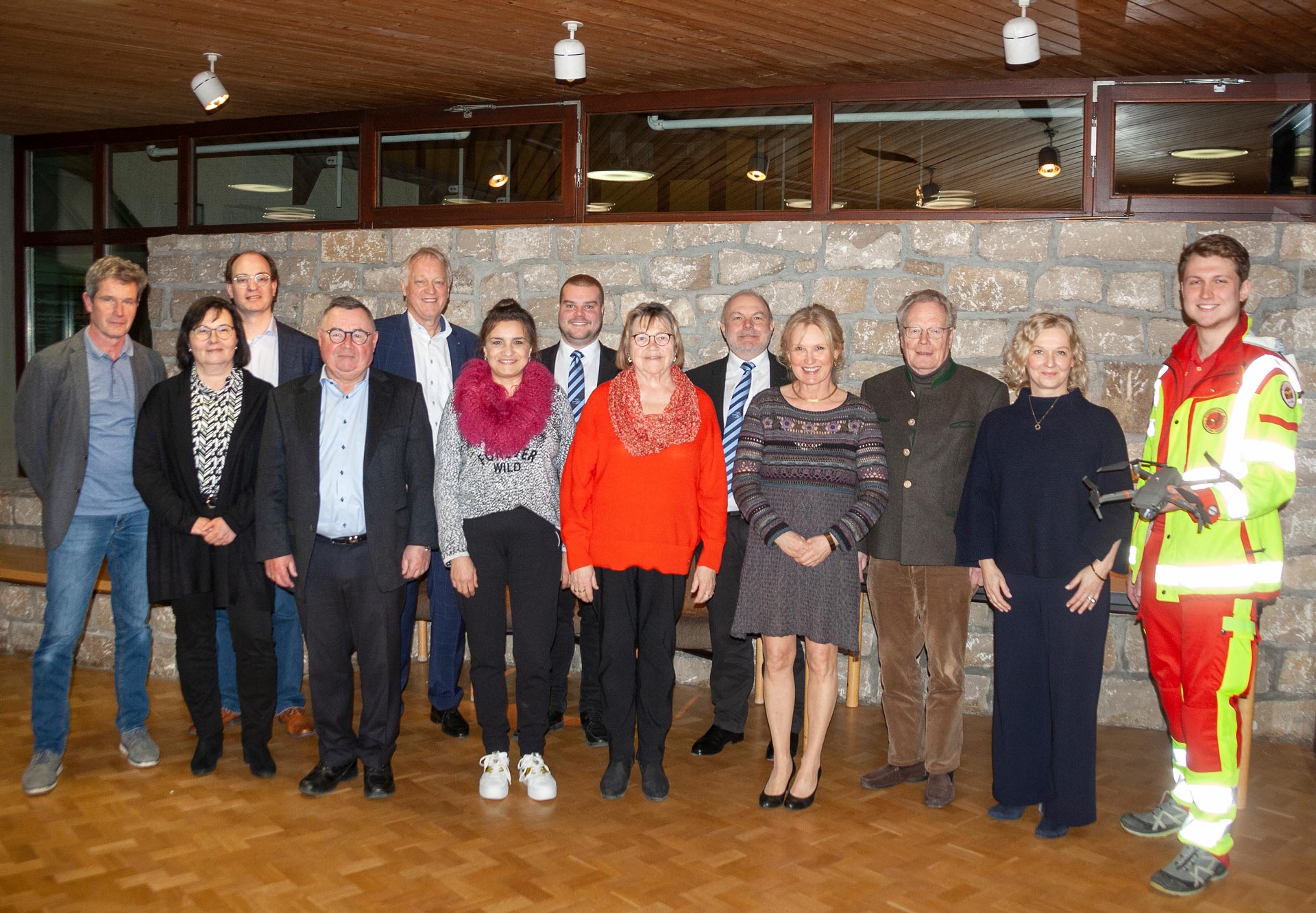 Foto: Der scheidende Vorstandsvorsitzende der Bürgerstiftung Lauda-Königshofen, Gerhard Glöckner (4. von links) und dessen Nachfolger Jürgen Besserer (links) gemeinsam mit Bürgermeister Dr. Lukas Braun (3. von links), der Vorsitzenden des Stiftungsrates Dr. Cornelia Müller-Reiter (4. von rechts), den aktuell amtierenden oder ehemaligen Mitvorständen sowie Vertretern der Zuwendungsempfängern.